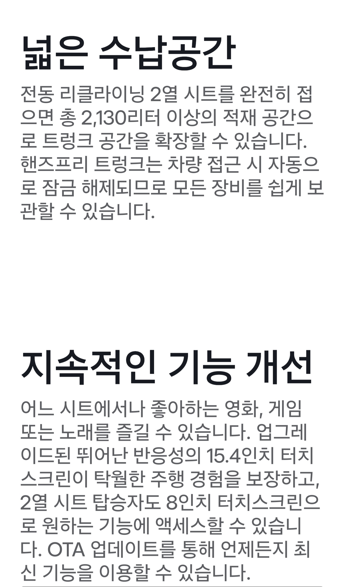 • 서스펜션, 방음, 자동 트렁크 등 편의성 대폭 향상