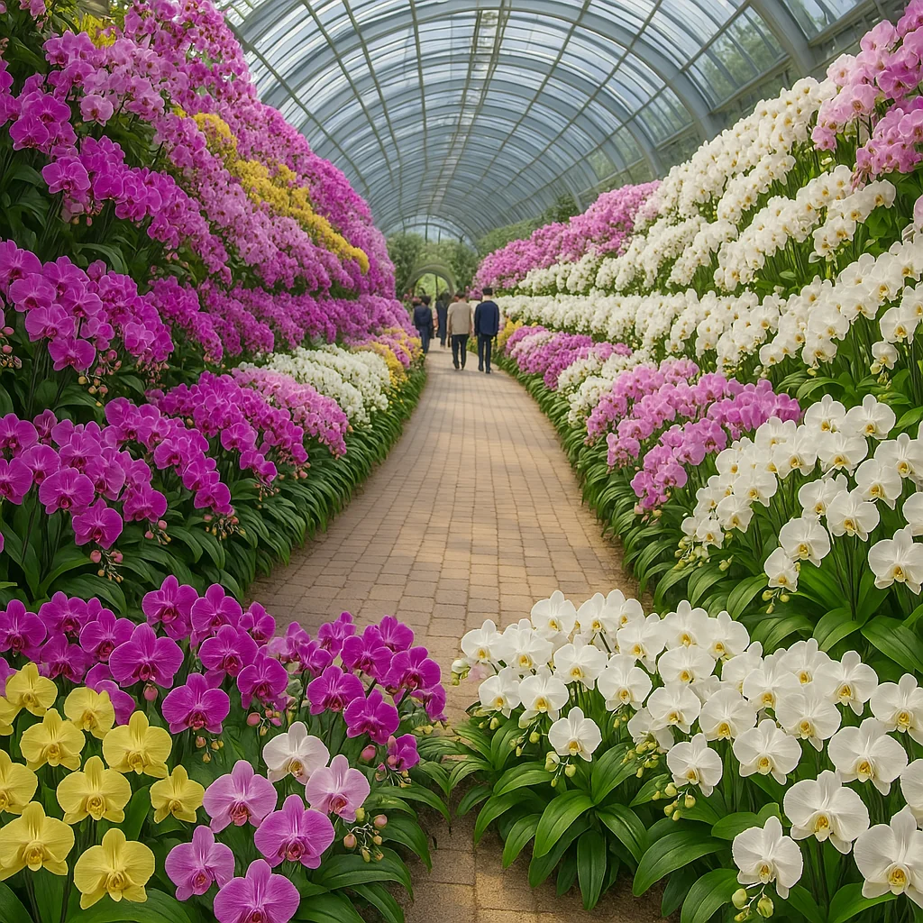방문객들은 난초가 줄지어 심어진 길을 따라